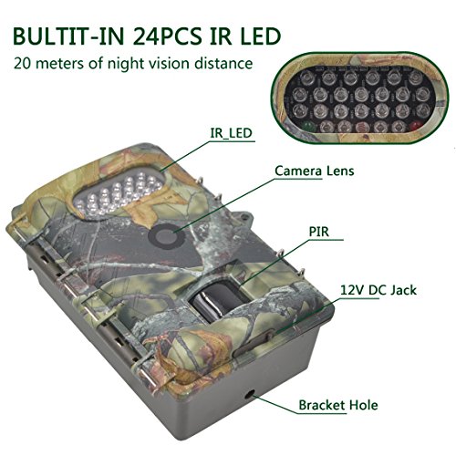 [HD SECURITY CAMERA]: The hunting surveillance cameras record with Time Stamp.Perfect for the surveillance of reptiles,and amphibians.At the same time,it reduces the inadvertent shoot caused by the leaves or grass, saved power and SD card storage space.