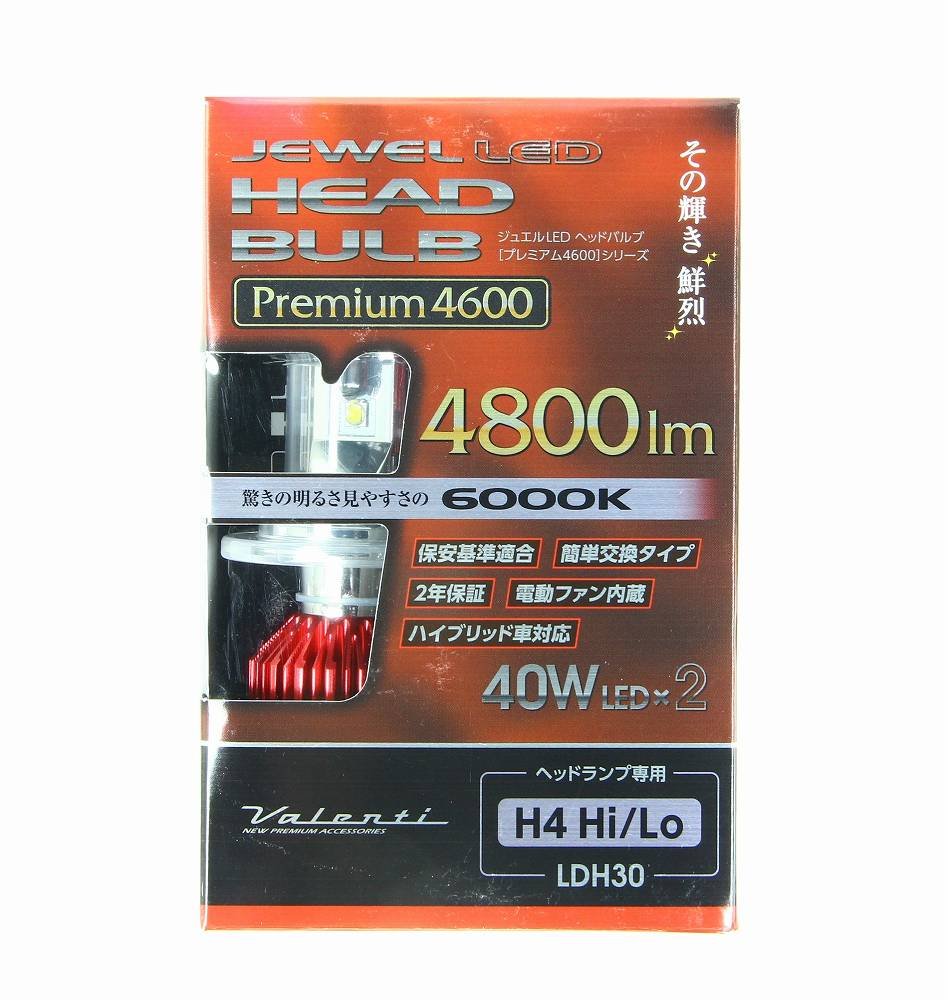 VALENTI (Valenti) Jewel LED head valve premium white 6000K H4 Hi / Low LDH30-H4-60