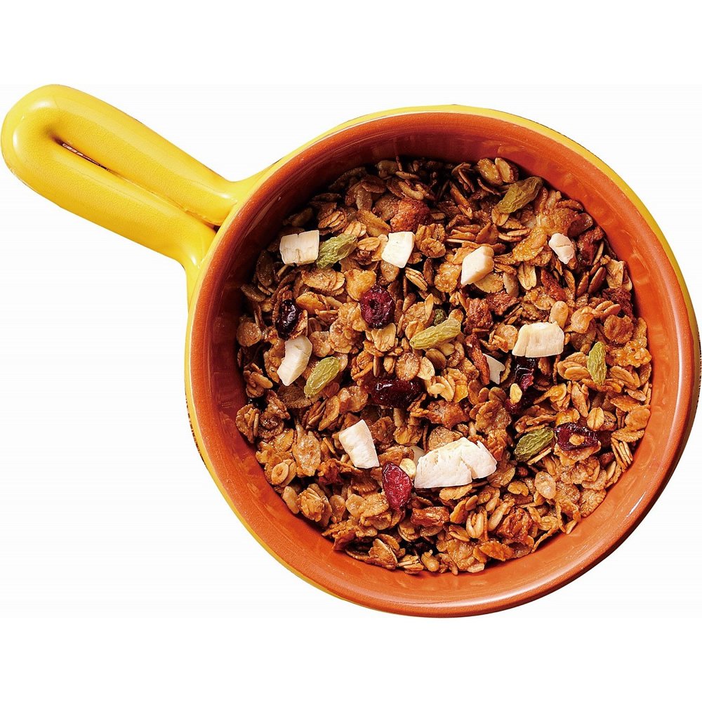 Granola with plenty of cereals, based on barley, with 5 ores of oats, brown rice, wheat, soybeans and corn added.