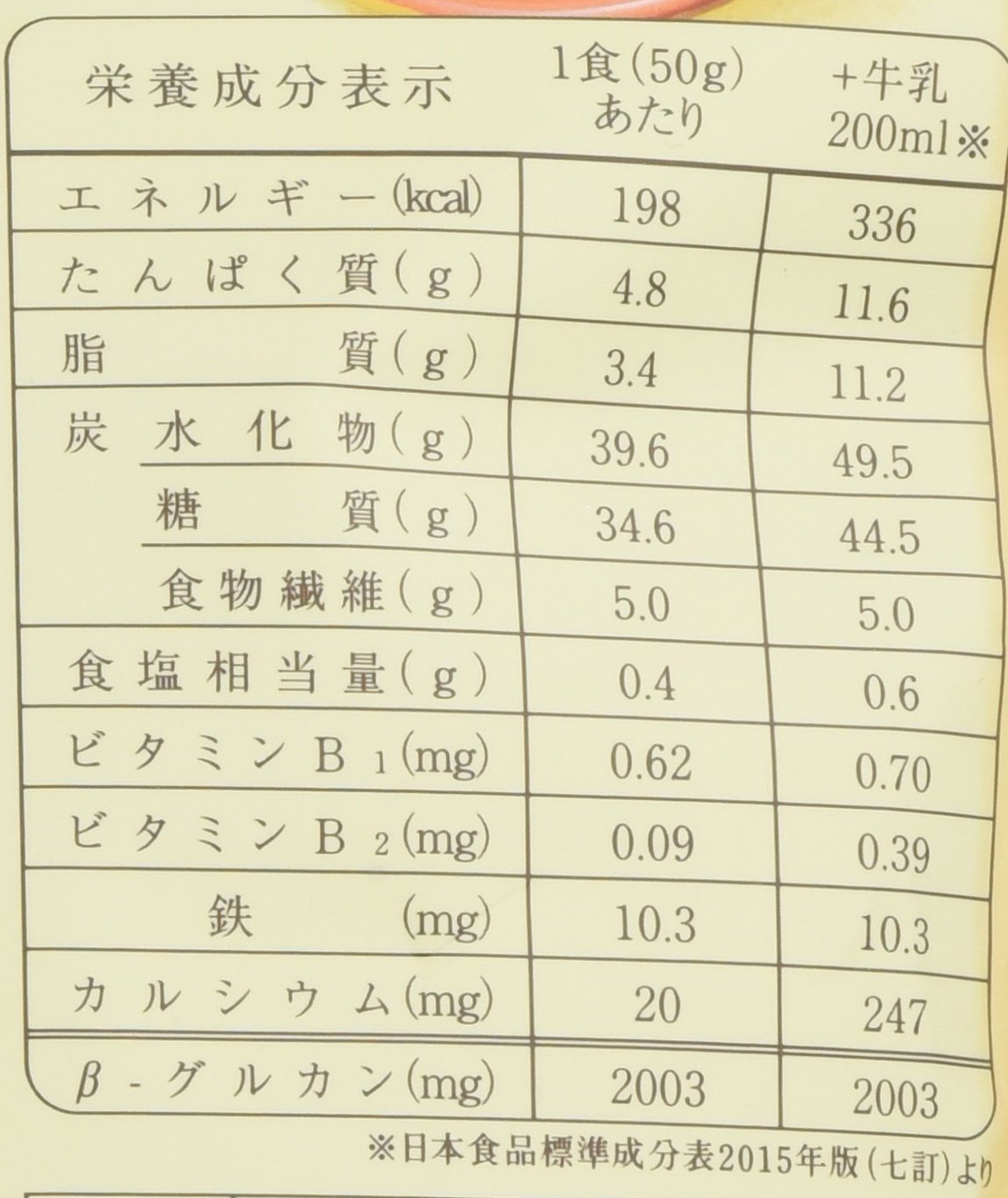 mg, calcium: 20 mg, β-glucan: 2003 mg ... per meal (50 g)