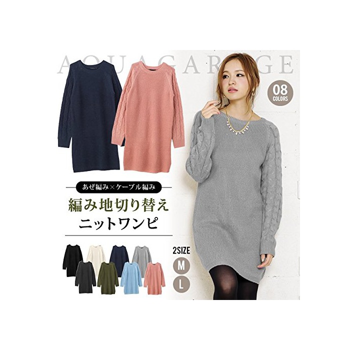 원본상품명: AquaGarage(アクアガレジ)編み地切り替えニットワンピ