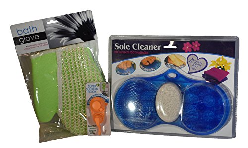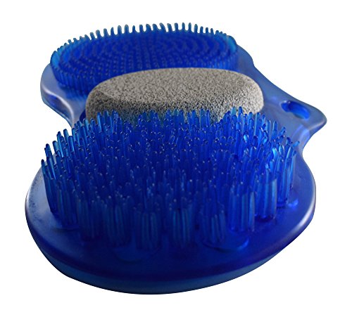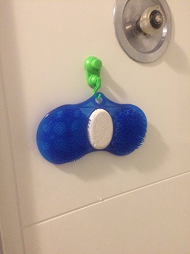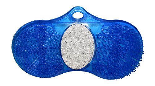 Foot scrubber & massager with pumice stone, sisal bath mitt and suction cup hook in assorted colors
