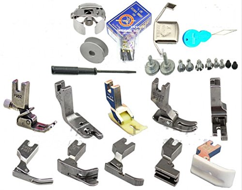 -. Feature : Set 17 style industrial sewing machine Presser Foot needle bobbin screw / What's in the package: 1x Bobbin Case 5x aluminum Bobbin 1x Magnetic Seam Guide 10x Sewing machine needle( DBx1) Size #11 10x Sewing machine needle( DBx1) Size #14 10x Sewing machine needle( DBx1) Size #16 10x Screw(5 stlye) / 1x threader 1x Screw Driver 1x P351 flat steel platen foot 1x plastic presser foot 1x Steel curling presser foot 1x T69HR pressure plastic insert line 1/8 '' 1xSteel P36LN unilateral presser foot pressure 1x steel P363 toothpick 1x High and low pressure steel CR1/16N foot steel P952 1x wrinkle presser 1x Steel SP-18 wall presser foot 1x (default hair 1/8) steel S518N Invisible zipper foot