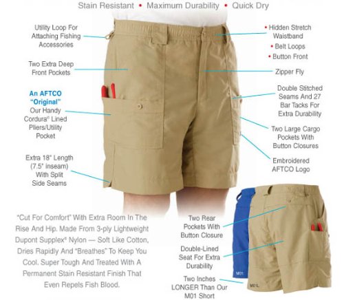 -. Title : AFTCO Bluewater M01L Long Traditional Fishing Shorts