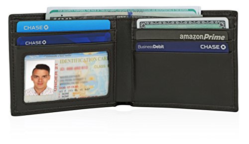 -. Feature : PERFECT HOLIDAY GIFT IDEA: This beautiful and elegant wallet for men will make the perfect gift for every gentleman in your life. Each wallet comes in a - UNIQUE GIFT BOX - so you can show your loved ones you care / DESIGNED FOR YOUR CONVENIENCE: The 3.3''x 4.4'' wallet is very slim even when it's full of bills so you can carry it in your pocket. It has 2 large compartments for you to keep your bills, 2 side ones and 5 card slots, as well as a front ID window / ELEGANT AND DURABLE: The wallet is made with genuine leather and it's all in black to suit every style. The leather wallet has a smooth finish for maximum elegance and it is extremely durable so that you will never have to worry about tearing it / WITH RFID BLOCKING: Nowadays it is extremely easy for criminals to scan your cards even when they're in your wallet! You can now stay protected with this bifold wallet with RFID BLOCKING Your cards and personal details will always be safe! / RISK FREE PURCHASE: We make sure that all of our products are crafted to perfection but if for any reason you are not fully satisfied, we will give you a - FULL REFUND - just let us know within 6 months!