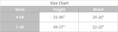 Size Small | Height (inches) 33-48 | Waist (inches) 24-26 | Child Size 4-6