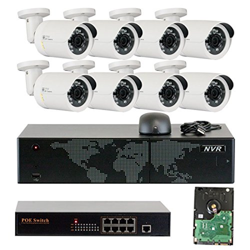 8 Channel Full 1080P Real-time Recording NVR with (8) 960P 1.3 Megapixel 3.6mm Wide Angle POE IP Cameras