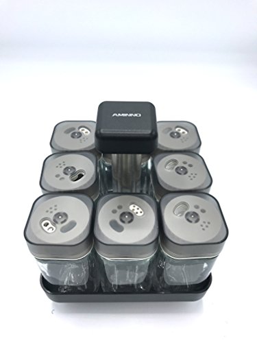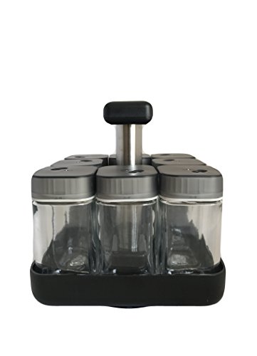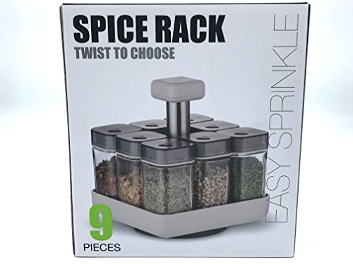 9 Piece Spice Jar and Rotating Spice Rack Set (Black)