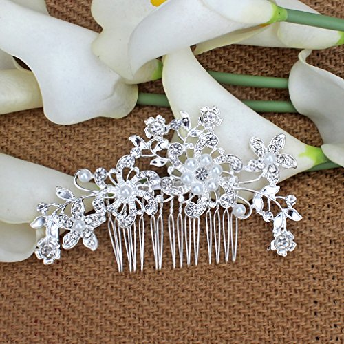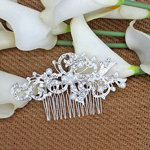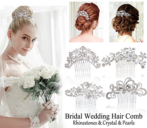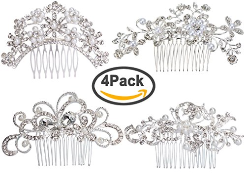 Pack of 4 Bridal Wedding Hair Comb Crystal Rhinestones Pearls Women Hair Side Combs Bridal Head Pin Headpiece (Silver)