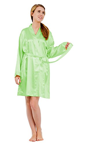 Binding : Apparel Product Description This robe is made from good quality 100% Poly Satin fabric with the feel and look of the silk and at the same time is regular machine washable. This robe is also provided with one side pocket to put your favorite snacks while watching TV or to hold your cell phone while walking around the house. There is also a two inch cuff and one inch hem make this robe more stylish. All garments we sell are are brand new/sealed packed and delivered to our customers in its original packing. 0