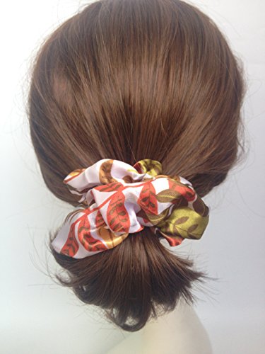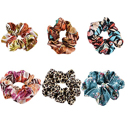 6Pcs Flower Satin Scrunchies, Women's Hair Scrunchies Hair Bow Scrunchy Ponytail Holder-HT001A