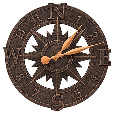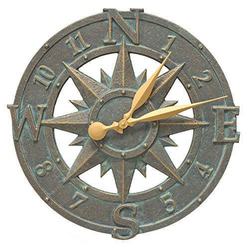 The Whitehall Products compass Rose clock offers long-lasting nautical charm and beauty for Garden and patio areas, porches, as well as indoor areas.Feature