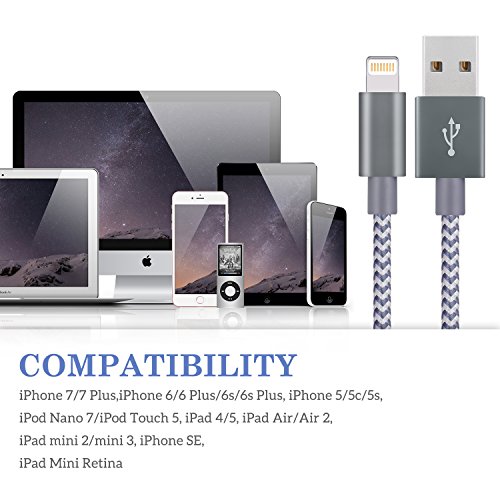 Studio : Cablex Publisher : Cablex Binding : Wireless Phone Accessory Product Description Great ChargingSyncing Performance 8Pin Charging Cable with anti-resistant aluminum alloy connectors, 100% compatibility to transmit data stably and charge fastly without error messages Compatible With iPhone 7/ 7 plus/ SE iPhone 6/ 6s/ 6 plus/ 6s plus iPhone 5/ 5s/ 5c iPad Pro iPad Air/ Air 2 iPad with Retina Display iPad mini/ mini 2/ mini 3/ mini 4 iPod Touch 5th gen iPod Nano 7th gen NOT compatible with iPhone 4, 4s, iPad2, iPad 3, iPod Nano 6, iPod Touch 4 or earlier versions Extra Convenience 6ft lightning cables is perfect for you to use when the wall socket is out of reach 3packs give you more back-up choices in case that you cannot find your cable Package Contents 3Pack 6FT Nylon Braided lightning cables Notice Please make sure the power output is not over 5V/2.4A while charging with the cables Please avoid the charging cable next to anything that may dissipate heat Warranty Police It comes with 12-month warranty and we provide long-term technical support, please feel free to contact us if you need any assistance 0