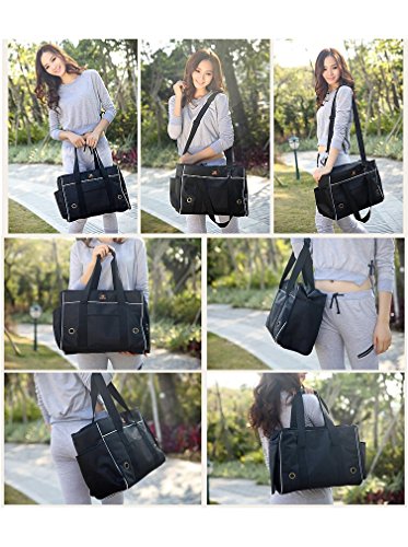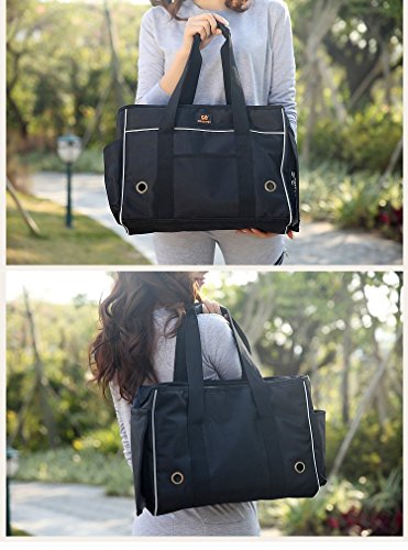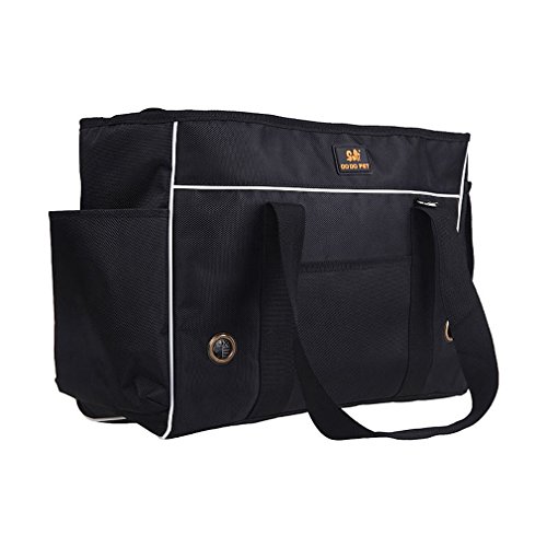 Made of Oxford. not fade, no distortion, breathable, lightweight, washable and soft. Note: two holes on either side. Zipper from left to right, easy to in and out. Pocket at the front for small things. Application:Comfort carrier soft-sided pet/cat /dog carrier Removable plate at the bottom, easy to clean. Detachable adjustable shoulder strap included. The large one has breathable mesh in the middle, pet feel cool and comfortable in the bag. Besides, pet can see outside, but people out cannot see the pet inside.