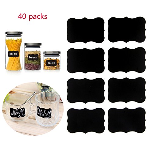- WIDE RANGE OF USE: Package of 40 pcs chalkboard labels for jars, organizing, labeling, and weddings, wine glasses, coffee or tea tin boxes, canisters, baskets, folders, office supplies, organize your home, kitchen, decorate your pantry storage & office, parties, coffee shop, craft projects, bakeries, walls and kids bedrooms.
