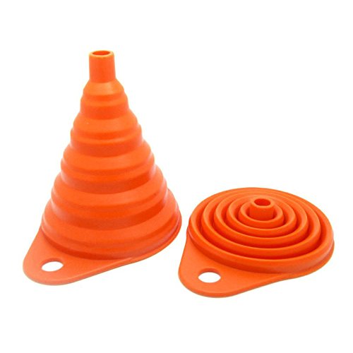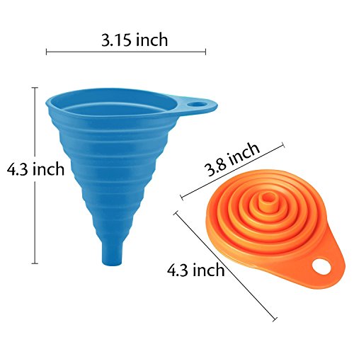 - Design : Collapsible funnel has a foldable feature that makes it very small and easy to store in any place. Expand use, fold store. Fold after taking up less kitchen space, easy to store. With it, your kitchen will be more delicate.