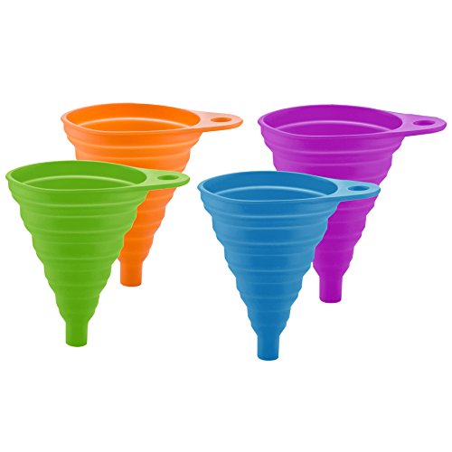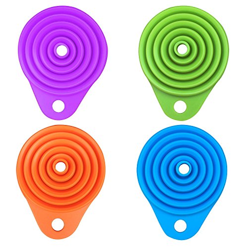 - Different color:Kitchen funnel for cooking have 4 different colors - purple, blue, green, orange, these beautiful colors immediately let your kitchen light up. One folding funnel has a diameter of 3.4 inches and a height of 4.1 inches, which is large enough for any place in the kitchen.