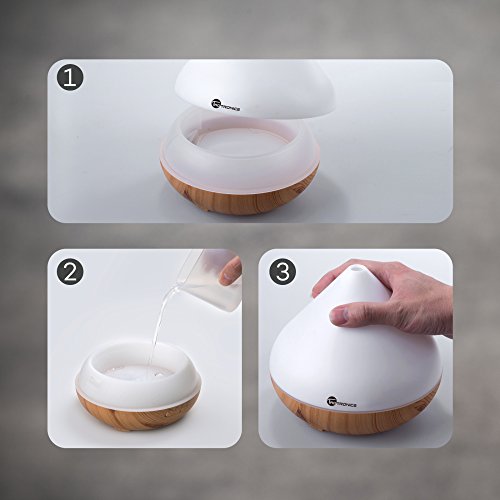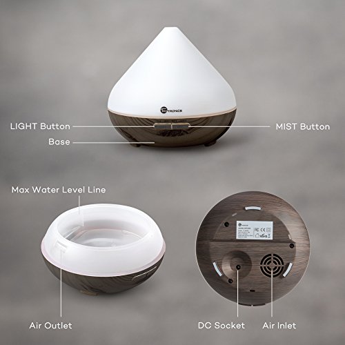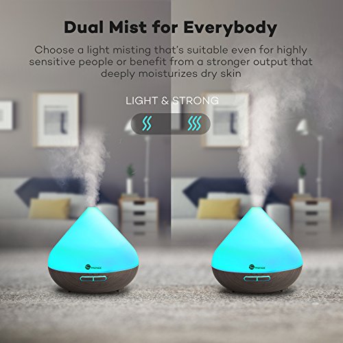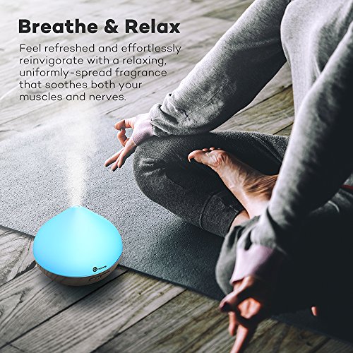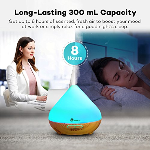 Essential Oil Diffuser, TaoTronics 300ml Aromatherapy Diffuser with Wood Grain, Zen Style, Cool Mist and 7 Colors ( Ultrasonic Aroma Humidifier, Diffusers for Essential Oils, Low Water Auto Shut-off)