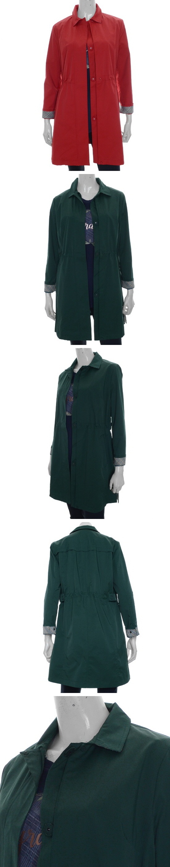 -뛰어난 신축성과 은은한 광택감이 있는 나일론 코튼 혼방 소재로 체크 배색이 포인트며 멋스럽게 풀어낸 트랜치 코트.