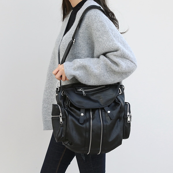 |  숄더, 크로스, 백팩까지! 다양한 연출이 가능한 배낭백 소개해드려요 블랙 컬러에 지퍼 디테일이 들어가 시크한 무드가 매력적인 배낭백이에요 가방 입구 부분을 벨트 버클로 조절할 수 있어 유니크한 포인트가 되어준답니다 넉넉한 사이즈에 여러개의 포켓이 달려있어 실용적인 데일리가방을 찾으신다면 제격이에요 함께 구성된 스트랩을 어떻게 사용하느냐에 따라 백팩으로도, 숄더백으로도 사용할 수 있어 실용도 만점! 상세페이지 확인 후 굿초이스 해주세요       | COLOR | 블랙 | | 제품 색상은 모니터에 따라 실제 색상과 차이가 있을 수 있습니다. | | | | FABRIC | 합성피혁 | | | | PRODUCT ION | 제조국 / 중국 | | 품질보증기준 / 소비자분쟁 해결기준에 따름 | | A/S 책임자 및 고객센터 / 감성가방 | | | | SIZE INFO | 사이즈는 측정 방법에 따라 1~2cm의 차이가 있을 수 있습니다. | | 스트랩 길이는 연결 고리를 제외한 길이이며, 최대 길이입니다. | | (단위:cm, g) | | 가로 길이 | 세로 길이 | 너비 | 손잡이 높이 | 스트랩 길이 | 무게 | | 35 | 31 | 10 | - | 숄더-36(조절o)/백팩-33(버클o) | 1260 |  |