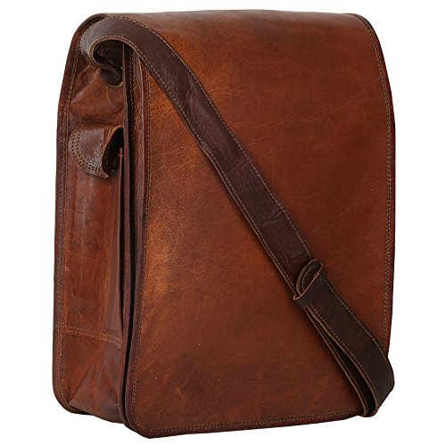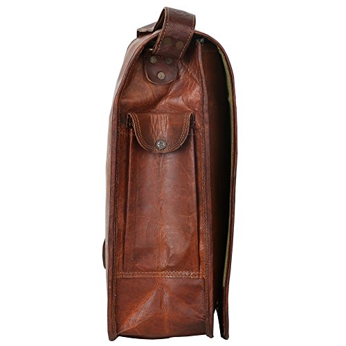 -. Title : Handcraft "Kannu" Brown Genuine Leather Vintage Look Laptop Messenger Bag 15" Height