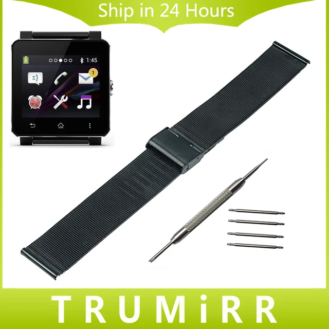 | [해외] 24 미리메터 milanese 손목 sony smartwatch 2 sw2 메쉬 스테인레스 스틸 시계 밴드 팔찌 스트랩 링크 블랙 골드 실버 |