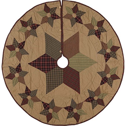 - Enlarged 6-point star in center in various brick red, moss green, and black plaid fabrics
