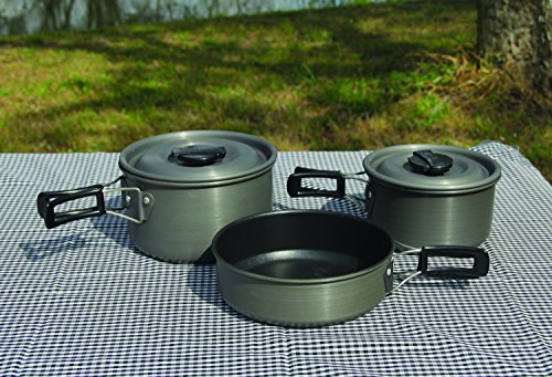 Texsport Black Ice The Scouter 5 pc Hard Anodized Camping Cookware Outdoor Cook Set with Storage Bag