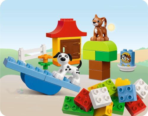 -. Feature : Enthält braune Katze, weißen Hund, Futterkarton, Napf, Blumen, Fenster in Holzoptik, Zaun sowie unterschiedlich geformte Steine und DUPLO Grundbausteine / Ebenfalls enthalten: Robuste, dauerhaft nutzbare Aufbewahrungsbox / Die beiliegende Broschüre mit Anregungen motiviert zum kreativen Spielen! / Enthält 31 Elemente.