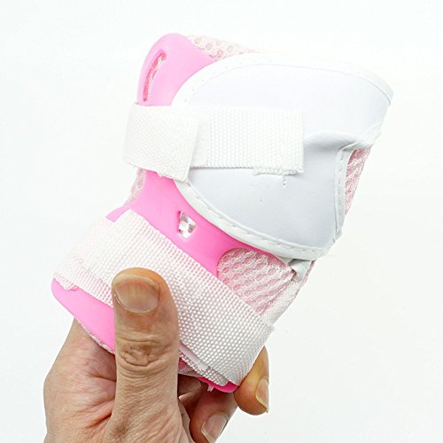-. Feature : Material: breathable net cloth + PE plastic shell (sponge pad inside) / color: pink / the strap is adjustable / Package includes: total 6 pieces / including: 2x kneecaps (height:13cm; width: 10cm) 2x elbow pads (height:11.5cm; width: 8cm) 2x handpads (height:13cm; width: 8cm