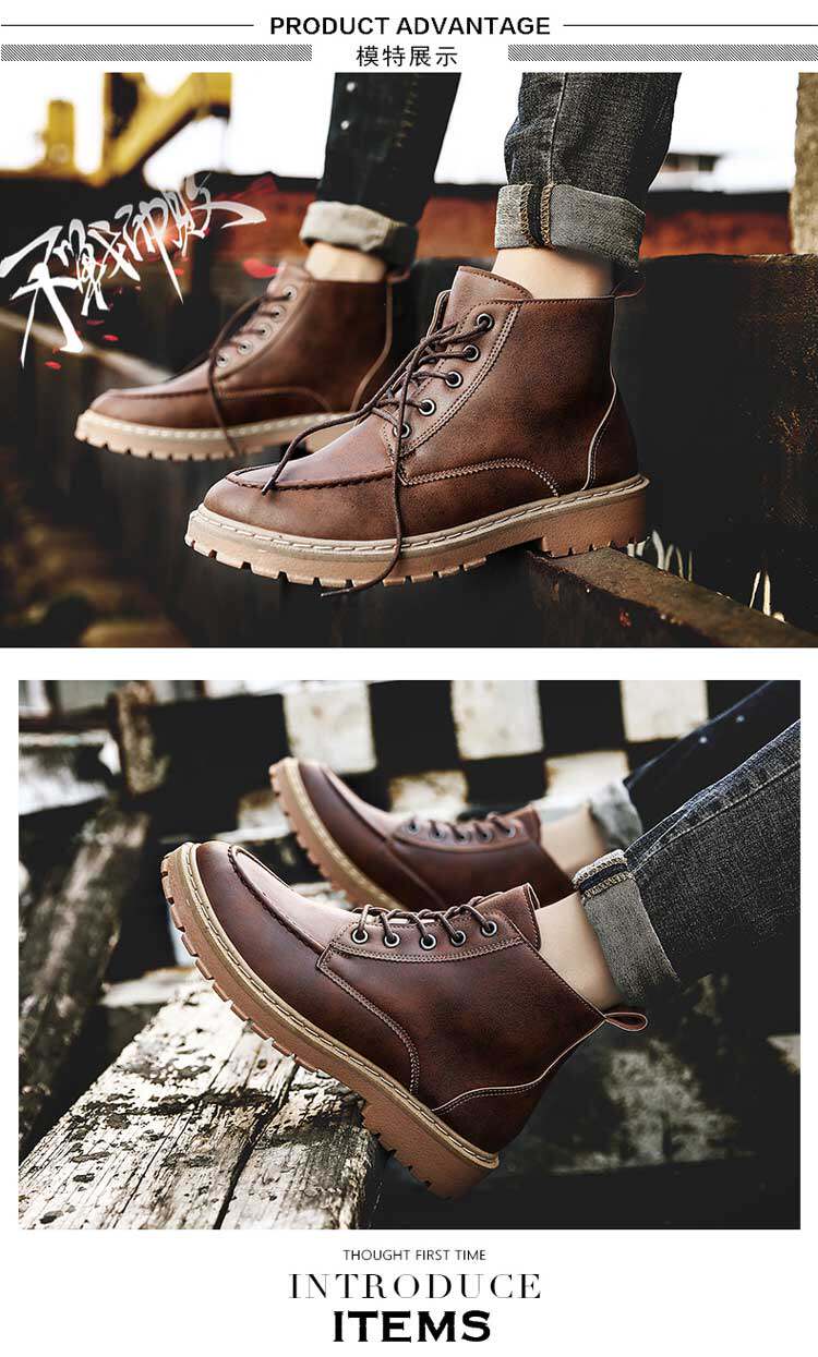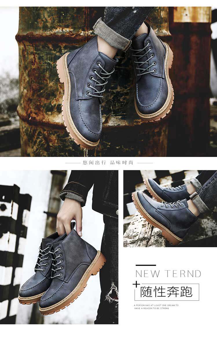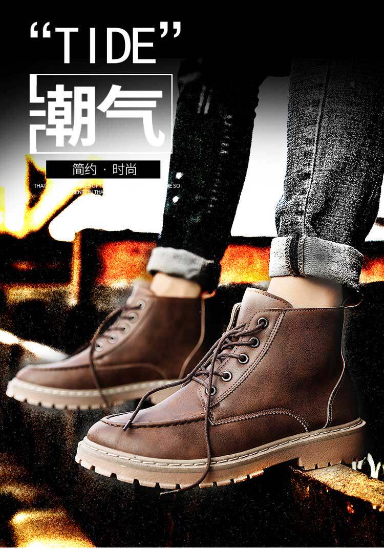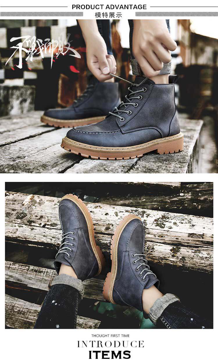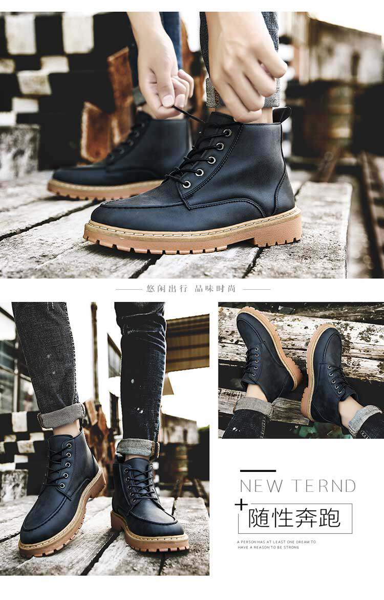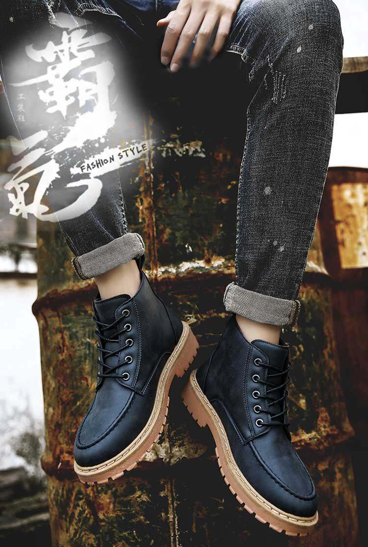 短靴男秋冬高帮大头马丁靴英伦百搭工装靴青少年休闲鞋男靴子潮靴