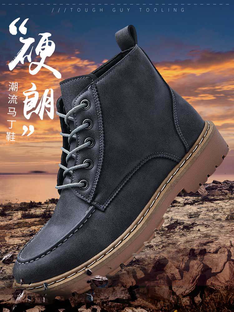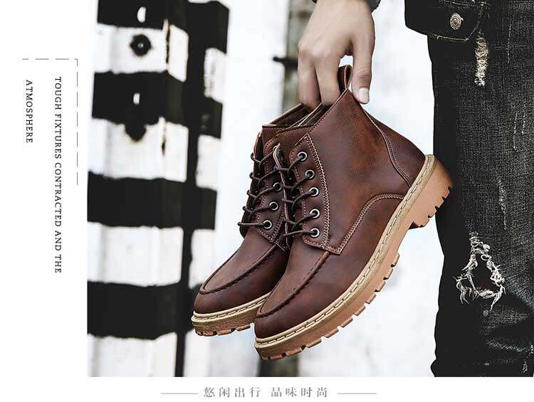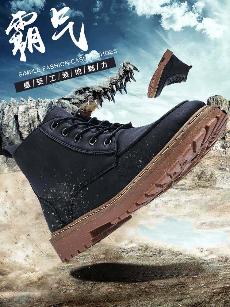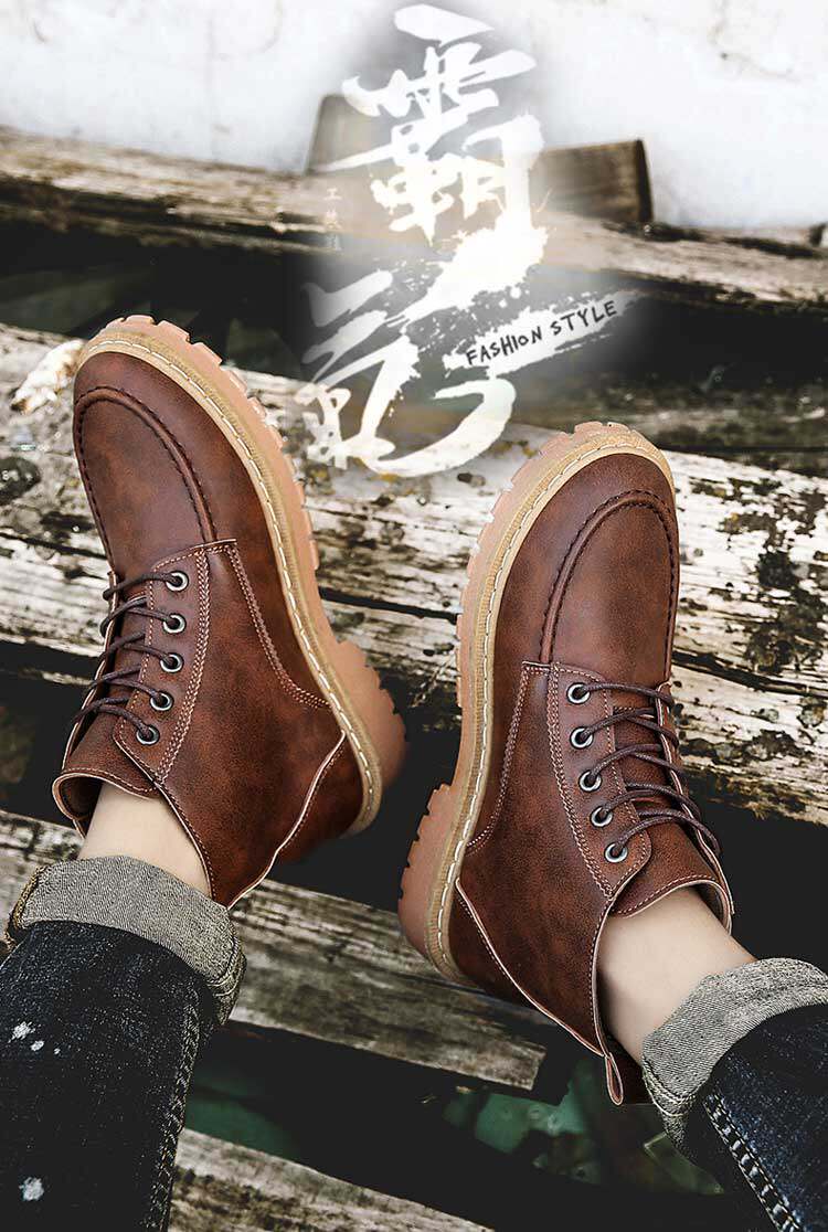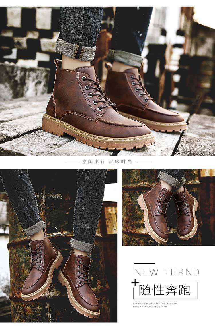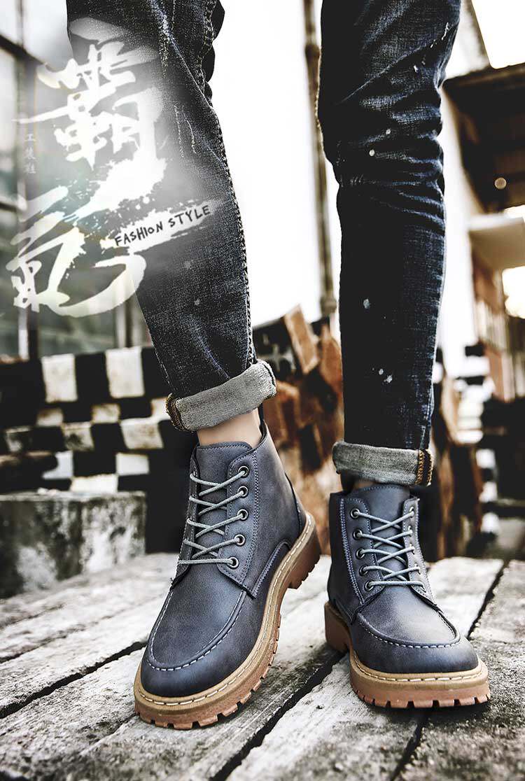 短靴男秋冬高帮大头马丁靴英伦百搭工装靴青少年休闲鞋男靴子潮靴