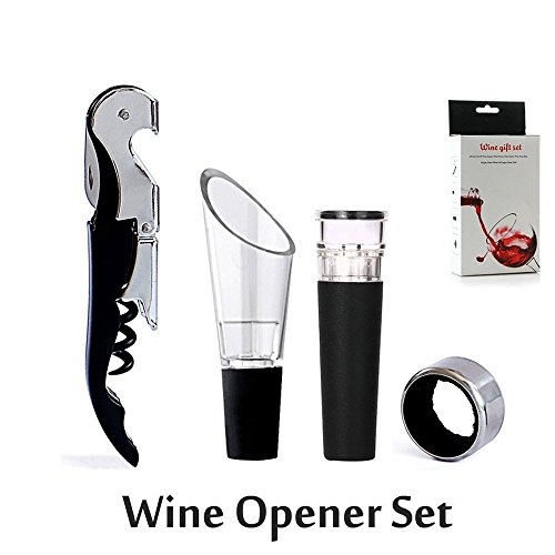 -. Feature : 4 in 1 accessory Set to include corkscrew openers , drip to ring , bottle stoppers and wine pourer . Stainless steel , food grade material made / Designed for and by winos, this wine lovers gift set contains all the essential tools for enjoying every pour decision to the fullest / Best sell bottle wine opener gift set wine accessory from direct factory. High qualities with competitive price make it a fantastic housewarming, wedding or retirement gift idea / Beautifully handles any size bottle of wine or champagne / Satisfactory Service: We guarantee that to return for A Full Refund If you are not completely satisfied with our production