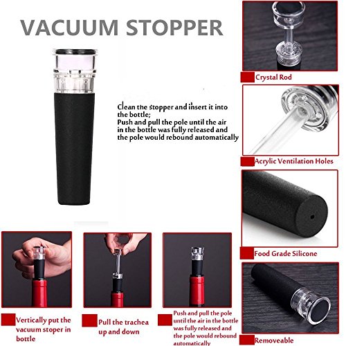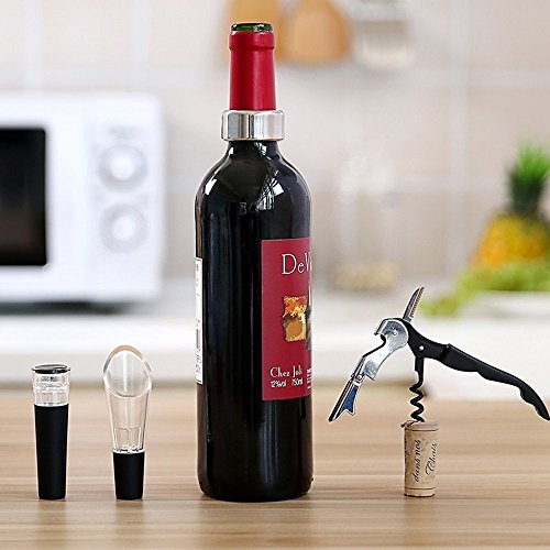 -. Title : Wine Opener Set for Red wine and Beer with Vacuum Wine Stopper, Wine Pourer, Drip Ring