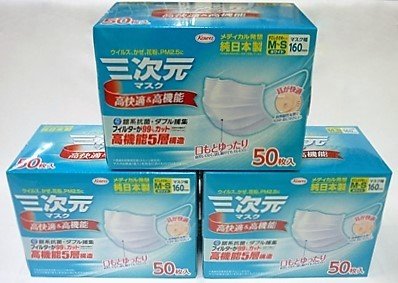 -. Title : <お得な3個パック>三次元マスク すこし小さめサイズ M-Sサイズ 50枚入り×3個