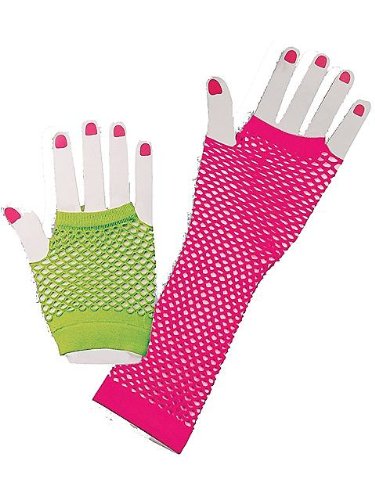 -. Feature : Includes: Short Neon Green Fingerless Glove, Long Neon Pink Fingerless Glove