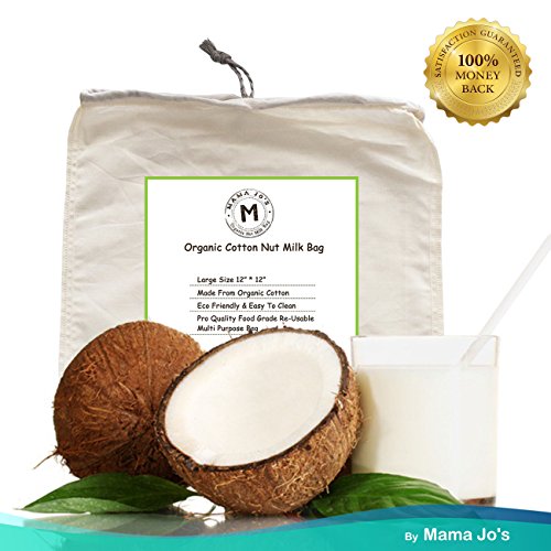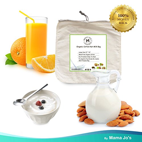 -. Feature : ** COMES WITH MAMA JO's 100% MONEY BACK GUARANTEE -. Use Promo Code MAMA1111 to get 10% off your purchase today... Don't forget you get 3 free recipes with your purchase. While your here pick up an extra for a friend, your sister, your mom or grandma! / ** ORGANIC COTTON / WE SAY NO TO TOXINS - Our bags are certified by GOTS (Global Organic Textile Standard) from the Netherlands. Free from toxins Harmful Chemicals, dyes, glues and BPA free. It's time to make the change and start living a healthier life. Mama Jo's Milk Bag will help you make it easy to start making your own healthy nut milks and smoothies that are free from preservatives, additives, GMO's, pesticides and toxic refined sugars. / ** OUR LARGE 12 X 12 MILK STRAINER BAG is designed to fit blenders like the Vitamix, Blendtec, as well as oster and most all other brands. Ideal for helping you make the best almond milks, cashew milk, fruit jellies, homemade wine/beer, hazelnut milks, Greek Tzatziki cucumber sauces, juices, yogurts, cold & hot brew coffee, amazing cheeses, pasta sauces and to help get those seed's sprouted in time for your summer garden! / ** OUR MILK BAG IS MADE TO LAST - Made with durable long lasting all natural organic cotton material to give you the confidence to be a pro in the kitchen. Perfect for natural food enthusiast, home cooks and commercial pro chiefs. Entertain and impress your guest with awesome natural creations for any event, gathering or holiday.. Our reusable bag strainer is easy to use, clean and dry so you can have it ready for your next homemade DIY recipe! / ** PRODUCTS YOU CAN RELY ON - Here at Mama Jo's Products we have more than 50 years of combined experience in cooking, creating and testing food recipes/dishes. From this we developed this awesome products like the Milk Nut Bag that you can trust and rely on. So Why go with anyone else? We've been there and done it so trust the company with the experience. Act now and become a part of the Mama Jo family because we know you'll love the quality and service that we provide!!