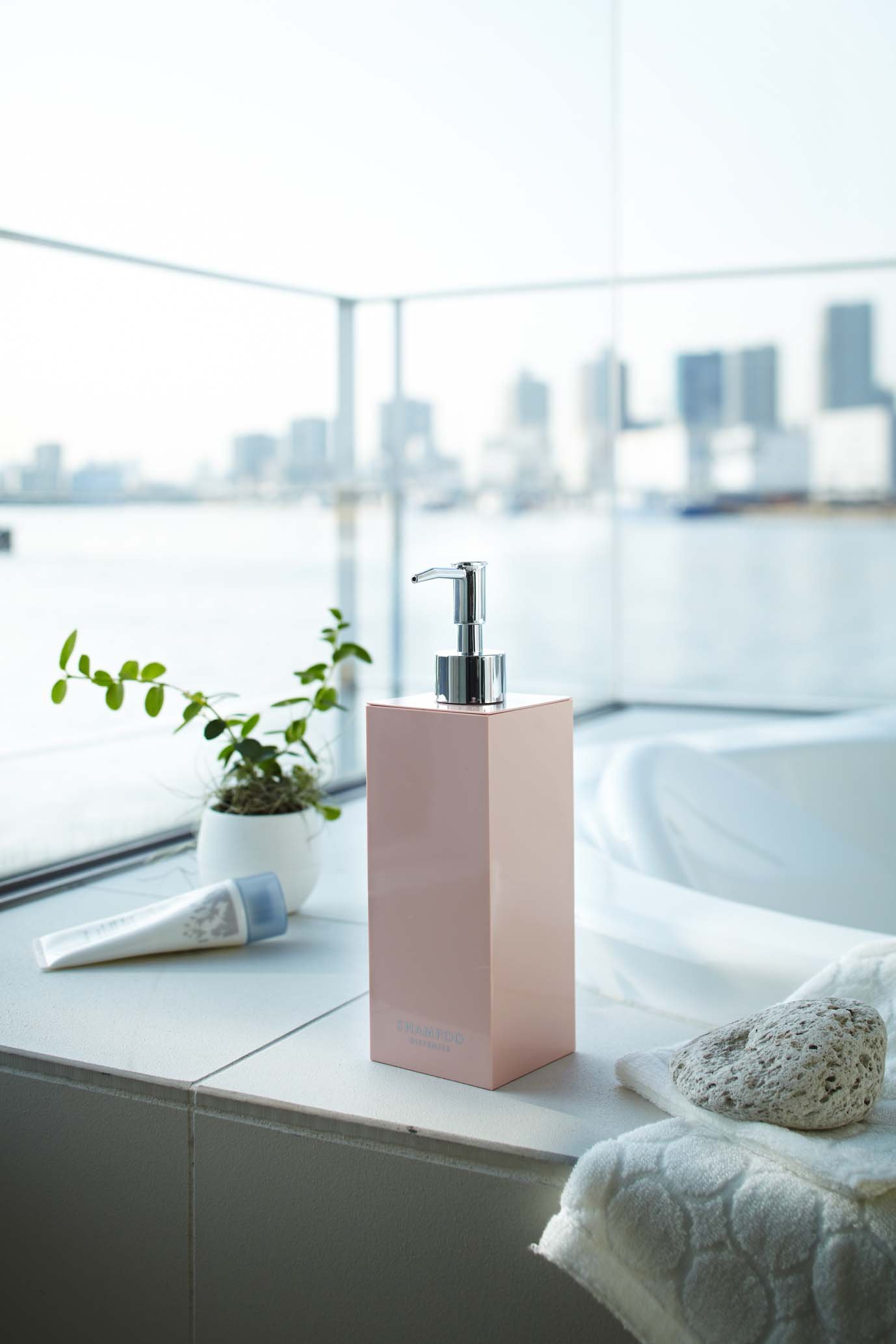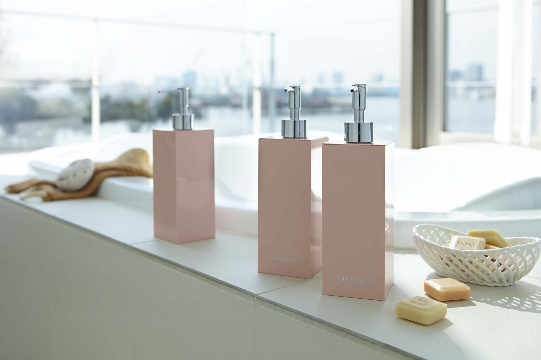 ● Stylishly designed shampoo dispenser «Features» ● Refill packs can be inserted as they are.