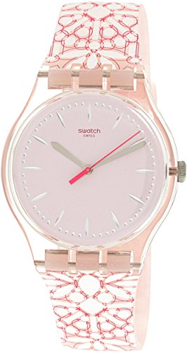No other watch brand has stood the popularity test of time quite like Swatch This Fleurie pink watch speaks tractability with a touch of elegance and style The popular plastic pink case and pink silicone band combo will work with every outfit and will quickly become a staple piece in any womens wardrobe With a 30 meters 100 feet 3 atm water resistance and durable mineral crystal this watch will keep on ticking and looking great even on your toughest days Set the trends with your impeccable fashion sense and amp up your wardrobe with the latest from Swatch Fleurie watchesFeature
