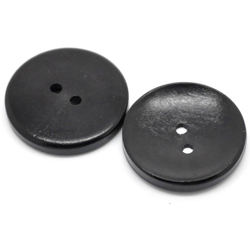 Bottle Caps, Beads and More (Tm) 30 PCs 30mm (1 1/8" inch) Black 2 Holes Round Wood Sewing Buttons