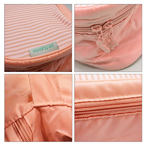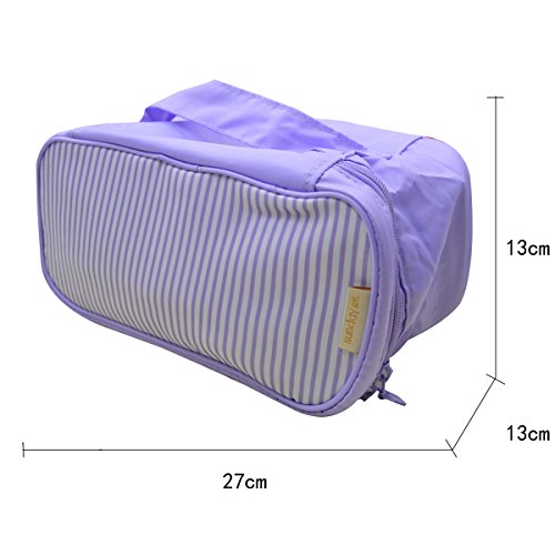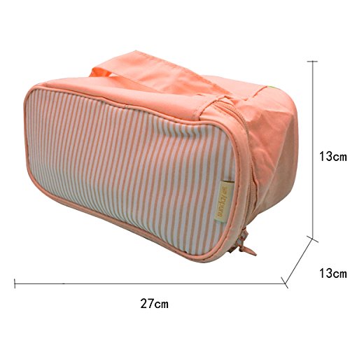 -. Feature : Material: The whole boxes are made of oxford fabric, which is moth-proof, mould-proof, moisture-proof, and very durable. / Size:10.6*5.1*5.5in / 27*13*13 cm(L*H*W). / 4 small pockets can storage underpants,the main pouch is for bras,and the side pouch is for some accessories.Actually you could use these boxes to STORAGE EVERYTHING YOU LIKE. / Foldable when not in storage,saving space. / Perfectly classify underware,bra,make-up,small things.With adorable stripe and light colors,you will be glad every time using it.