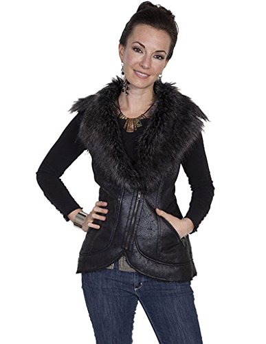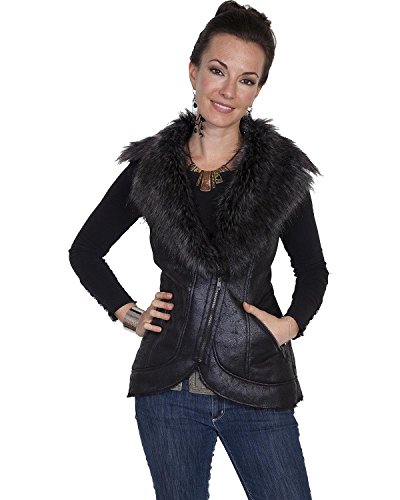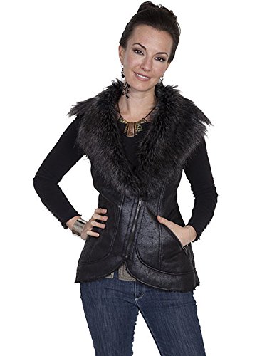 Studio : Scully Publisher : Scully Binding : Apparel Product Description For when you want to make a statement without saying a word, Scully has you covered. This striking Black Faux Fur Vest is made from faux antique suede, faux fur lapels, a zip front closure, and two diagonal open pockets. Women's clothing from Scully Honey Creek offers equal parts fun, elegance and western style. 0