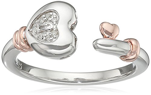 Sterling Silver with Pink Gold Plating Diamond Heart Ring, Size 7