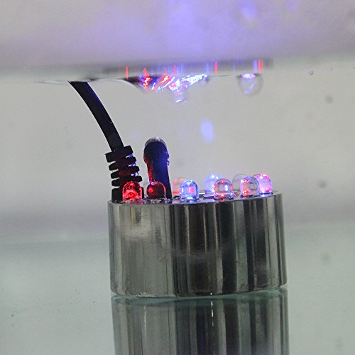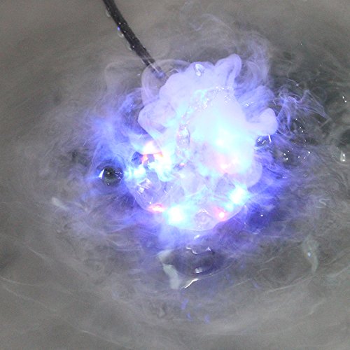 - Feature : No heat or chemicals used. / Easy to operate, put in the water and the voltage is 24V, then the mist appears. / Ideal for indoor or outdoor fountains, water feature, and office use. / With 12 LED (4 red + 4 yellow +4 blue) light, different color group LEDs are lighting up alternately. / Mist Maker Size: 4.6 cm diameter, 4.3cm tall