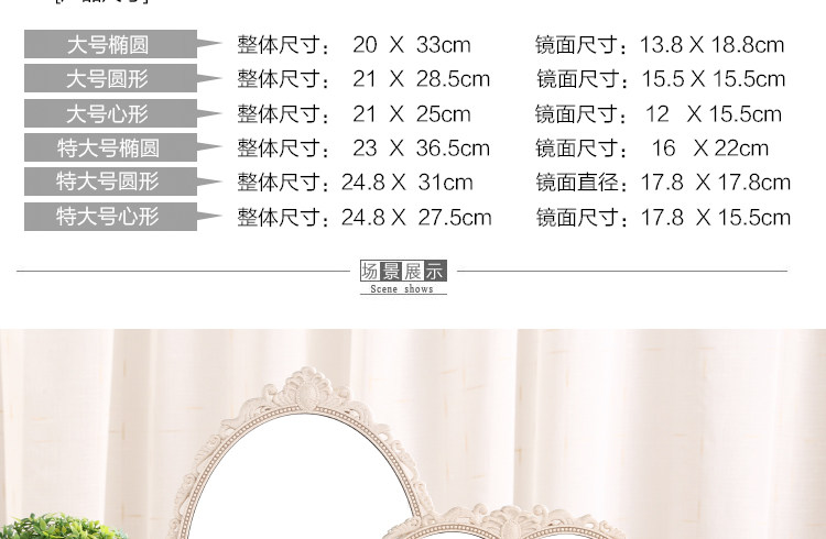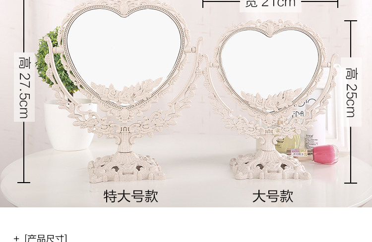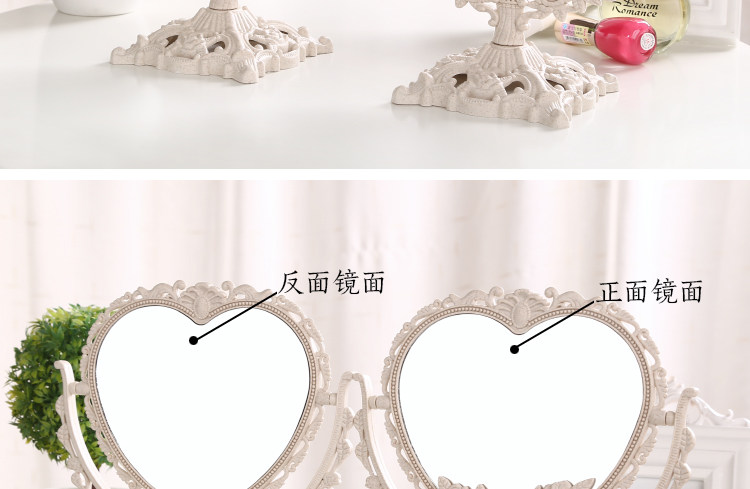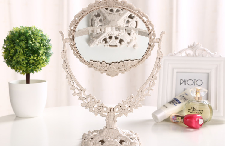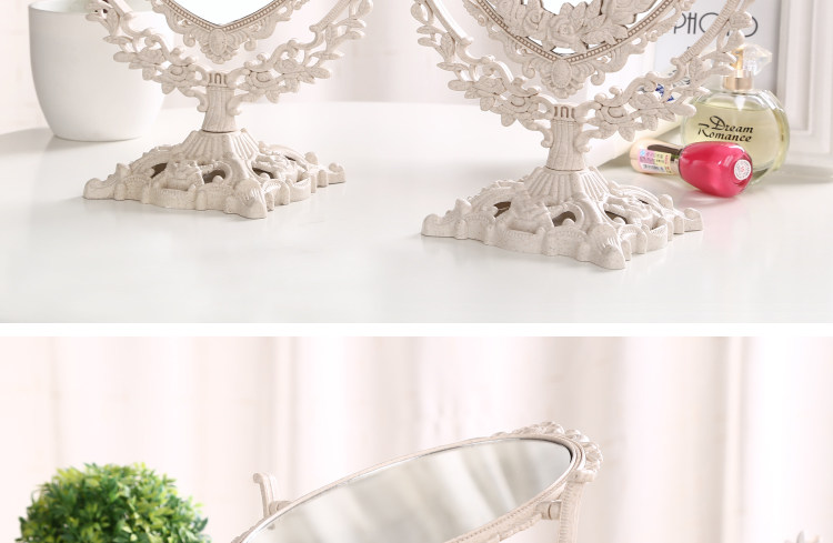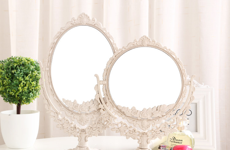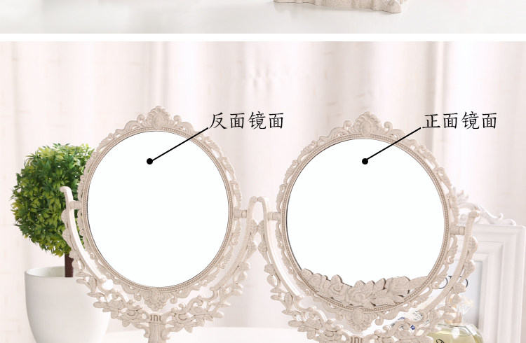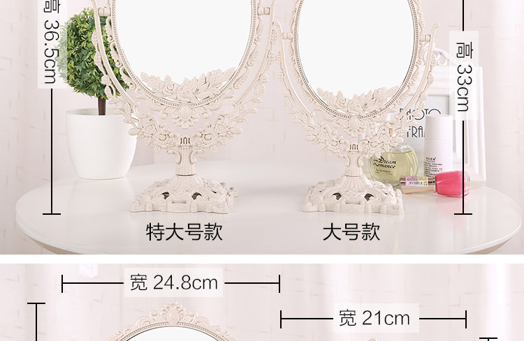 欧式台式化妆镜子 新款复古镜子 双面梳妆镜简约大号便携公主镜子