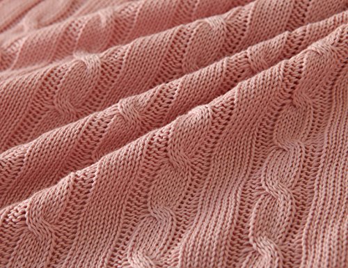 iSunShine® Cotton Knitted Cable Throw Soft Warm Cover Blanket Cable Knitting Pattern, 43*70 Inches, Pink