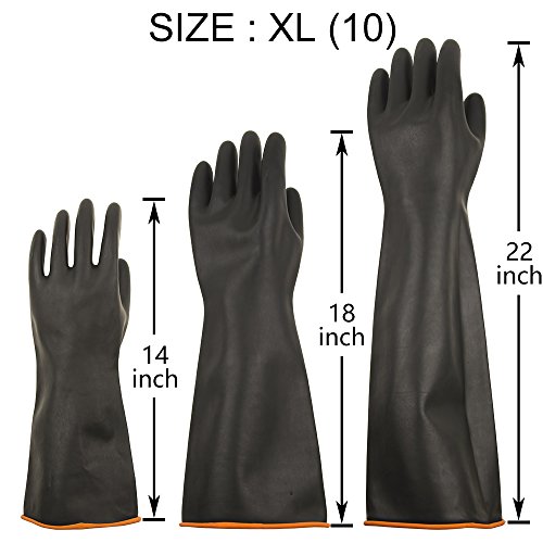 ThxToms Heavy Duty Latex Gloves, Resist Strong Acid, Alkali and Oil, 14" , 1 Pair