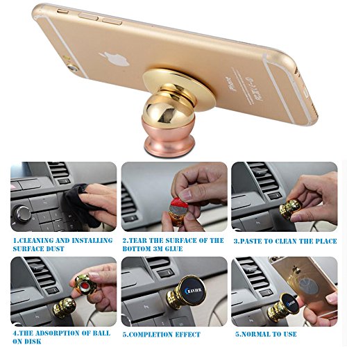 - No wobbling,No slippage: Designed with adhesive base, ensure your phone stay sturdy! Super easy installation: Simply stick the included adhesive metallic disk to the back of your phone, and place the phone with metallic disc centered over the magnetic holder.