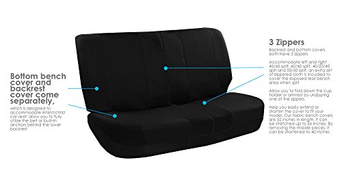 Includes 2 front bucket, 2 piece split bench: Backrest & Bottom Bench, and 2 headrest covers.