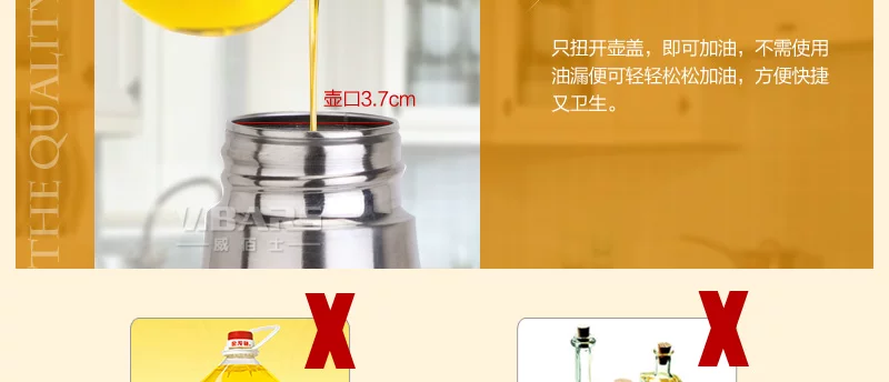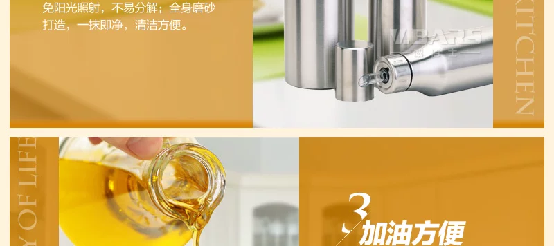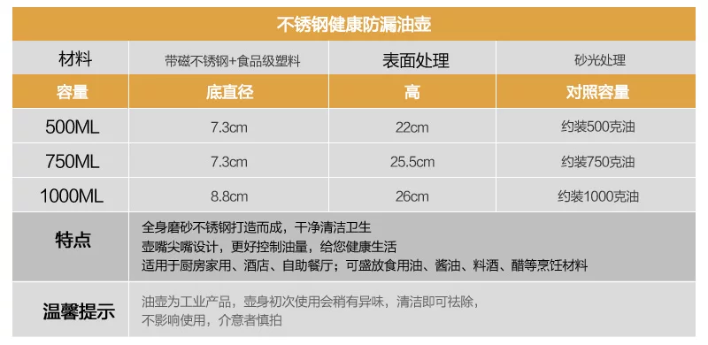 适用于厨房即用、酒店、自助餐厅;可盛放食用油、酱油、料酒、醋等